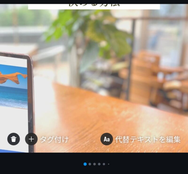 ・編集画面で画像の下部に重なるように「代替テキストを編集」をタップ